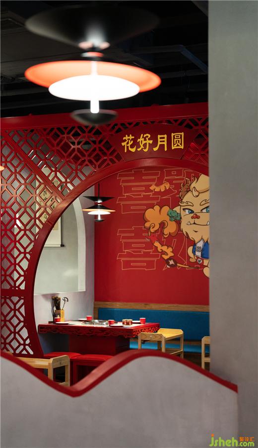 成都喜饕餐廳設(shè)計沿用了中國傳統(tǒng)神獸饕餮,所謂饕餮現(xiàn)身,瑞獸出世,神獸庇佑,福運繽至,又將中國傳統(tǒng)喜文化融入其中,因美好團聚,享吉祥美意,這就是喜饕的意義。