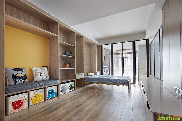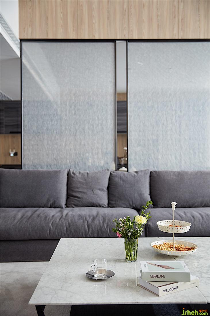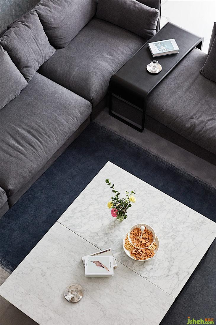 整個(gè)設(shè)計(jì)中,最吸引的軟裝搭配就是這套寬大的沙發(fā)了。
