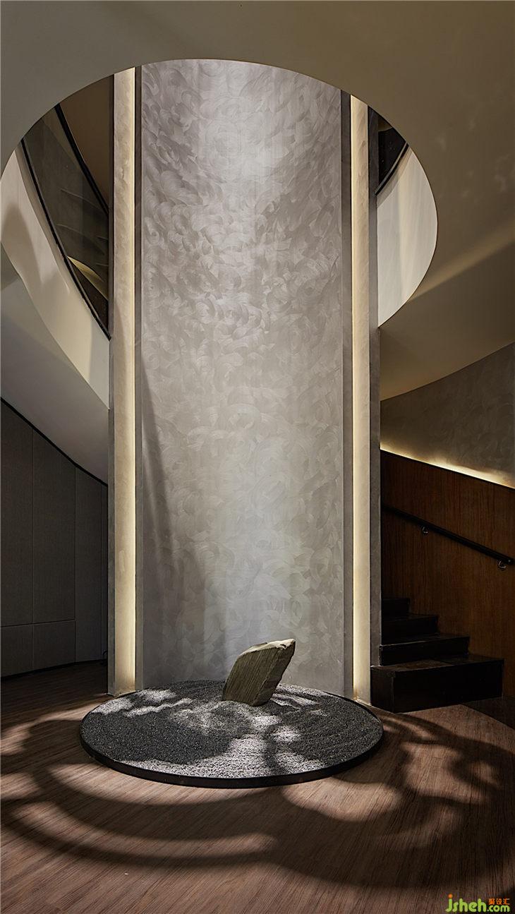 設(shè)計師著重于創(chuàng)建空間,首先在第一層先營造空間的流線,而后賦予空間一定的文化意義和精神內(nèi)涵,簡潔如斯,卻又豐富于此。主要材料華為不奢、雅而不俗的設(shè)計理念,將整個空間定義為清新典雅、古風(fēng)茶韻,汲取新中式元素,通過配飾的運用使所有小空間風(fēng)格統(tǒng)一、區(qū)域有別,達到功能與審美的融合。格柵和飾物的倒影若隱若現(xiàn)。在設(shè)計語言的運用上,設(shè)計師延伸了建筑的格柵外觀,運用細長的木格柵,而非實體的隔墻界定出各個功能“盒子”。走向扶梯延伸到第二層,高掛在側(cè)的一組層疊相間組成的“云燈”極為別致,設(shè)計師巧妙的運用空間元素,在“云燈”錯落有致的燈光映射下讓整個空間飽滿而立體。