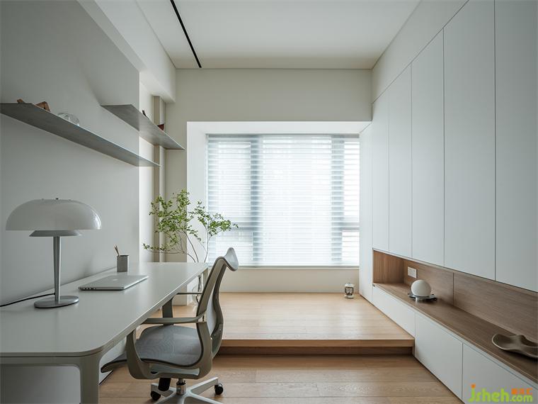 為此,我們開放客廳與書房的部分隔墻,并用玻璃封閉,同時移門的寬度,裝修設計透過巧妙的角度設計,為空間引入對角視野,層次多了,想像也多了。