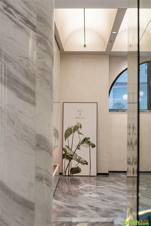 體驗(yàn)中心設(shè)計(jì)墻面的斑駁質(zhì)感延續(xù)了空間的天然雕飾的原始之美,虛實(shí)之間呈現(xiàn)出一種極致簡(jiǎn)約的美感。與產(chǎn)品相仿的光源色,鋪就出舒緩治愈的空間基底,置身于其中的訪客,與空間達(dá)成共情,產(chǎn)生連續(xù)、動(dòng)態(tài)的空間體驗(yàn)。