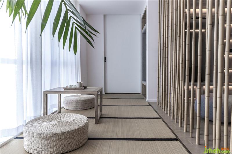 · 強(qiáng)調(diào)材料的自然特性,運(yùn)用將普通材質(zhì)的特性延展發(fā)揮到極致。質(zhì)樸的水泥漆,溫潤的木飾面板,自然的竹子以及白色涂料。