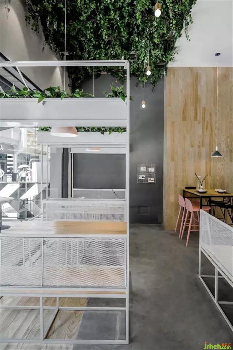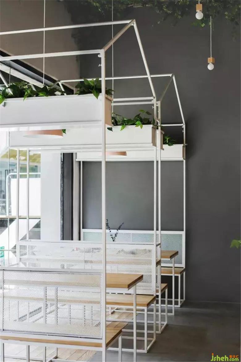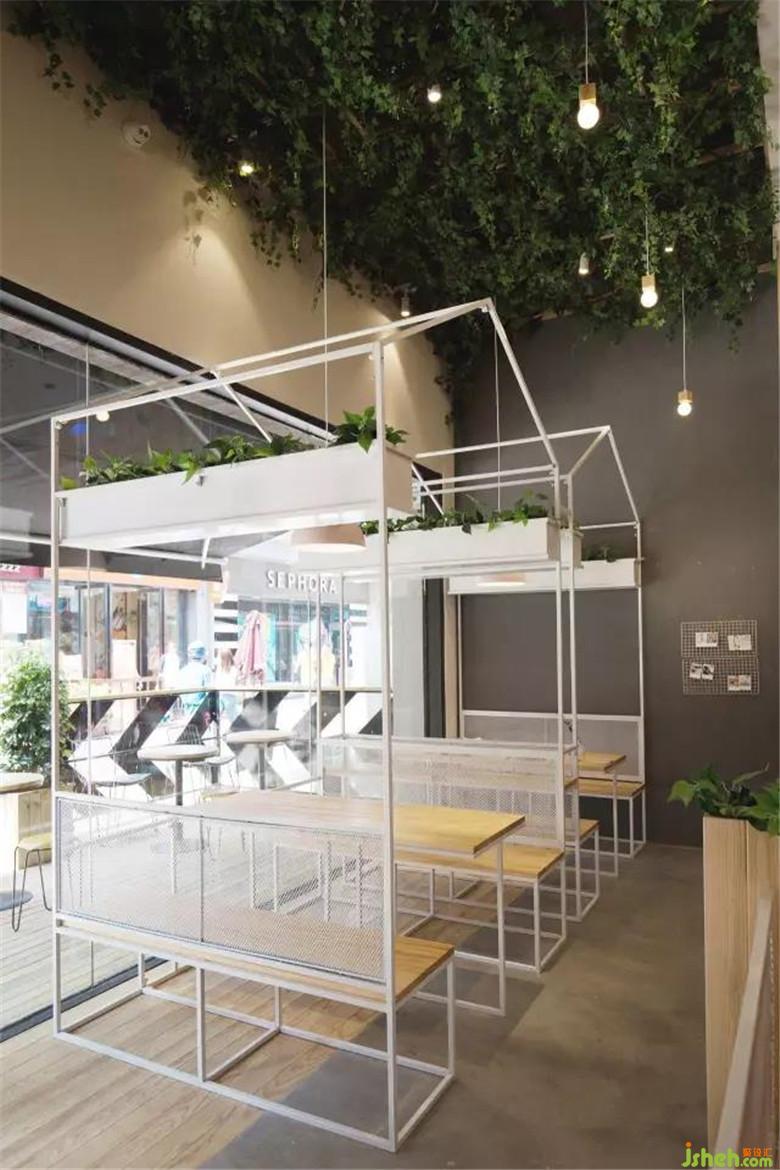 這是餐廳靠近入口處的一角,它由極具特色的鐵藝小房子結(jié)構(gòu)組成,自成一體。天花上的綠植吊頂,就像朱麗葉故居中墻上的常春藤,是它們的存在見證了那對戀人。