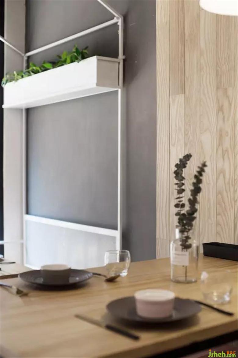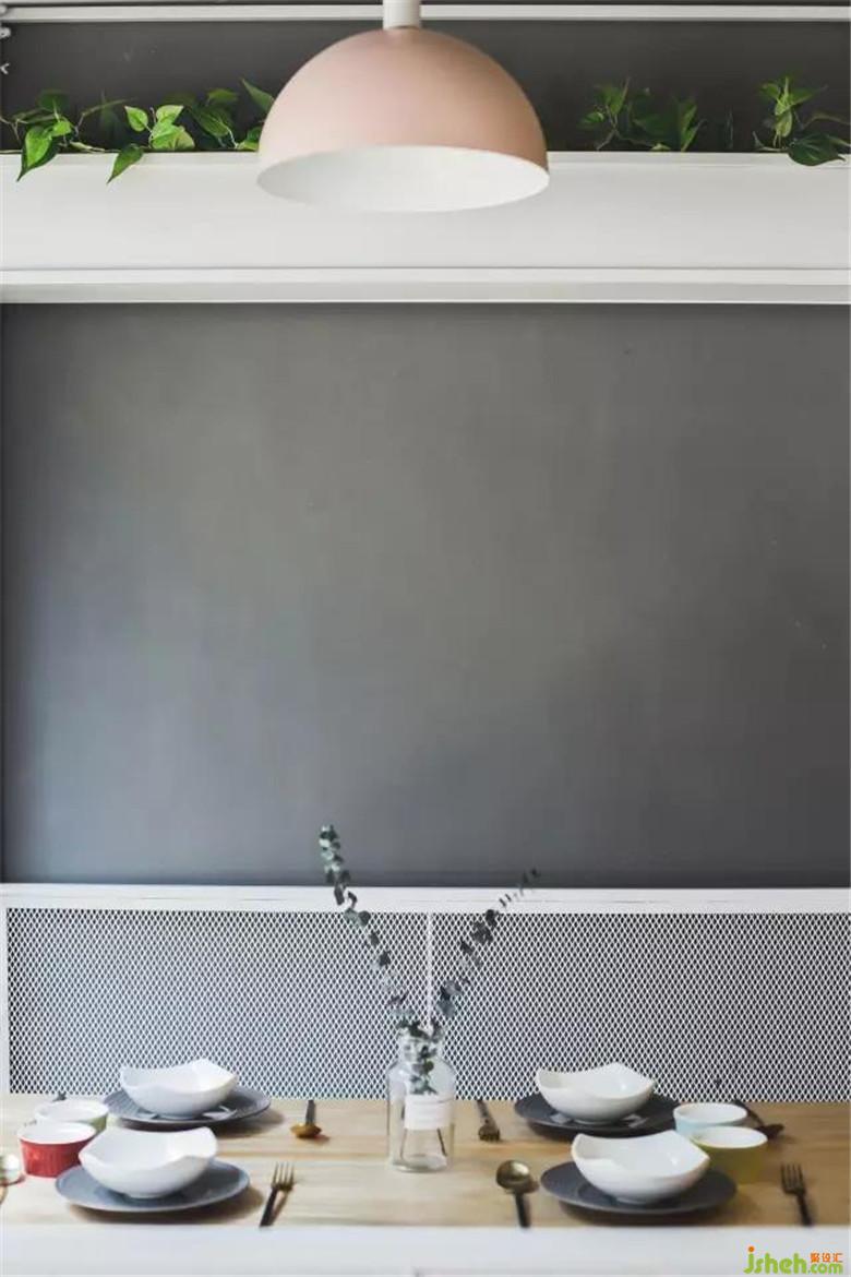 懸掛著的暖光小燈泡適當?shù)卦鎏砹丝臻g的通透性,也為這一角增添一份浪漫。餐廳設(shè)計