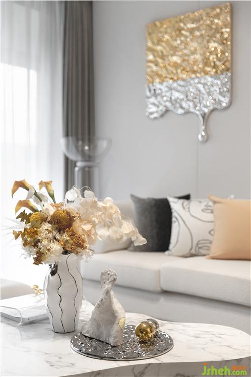 黃色穿插在米白色空間中,喚醒人們對于生活的熱情與期許。單椅與沙發(fā)形態(tài)各異,富有張力,株洲樣板房設(shè)計波點和線條點綴其間,將藝術(shù)美散發(fā)至空間每一處,詮釋生活個性化的無限想象。