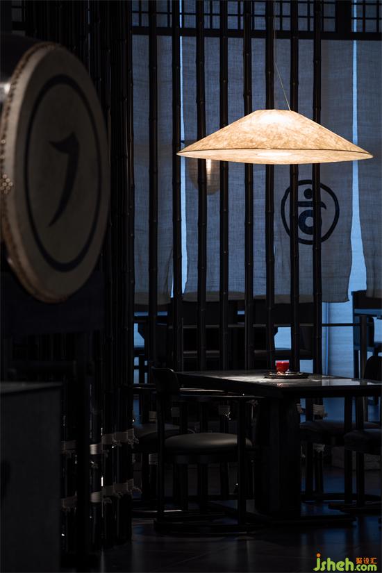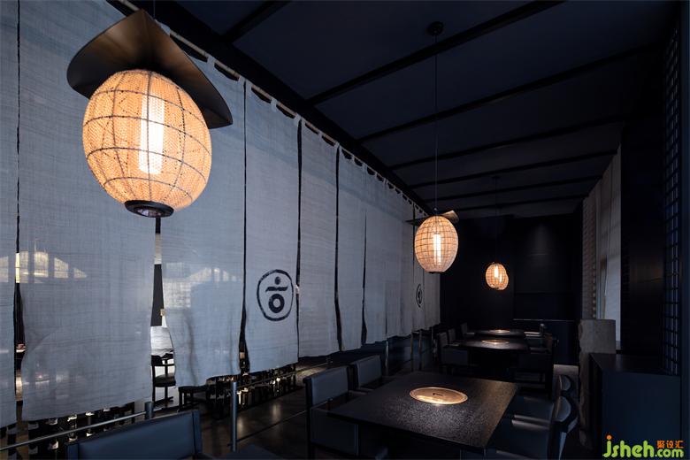 枯山水景觀沿著客人的體驗(yàn)路線布置,路過前臺(tái)移步至前廳探索中發(fā)現(xiàn)新的趣味。日式爐端燒餐廳設(shè)計(jì)卡座區(qū)超大落地觀景窗,不僅打破了內(nèi)與外的僵硬界限,還在客人享受美食之余帶給其另外的觀景喜悅感,苧麻編織的紗幔在風(fēng)中飄動(dòng),美食、食客、光影若隱若現(xiàn),日式爐端燒餐廳設(shè)計(jì)又給空間增添了一絲神秘。