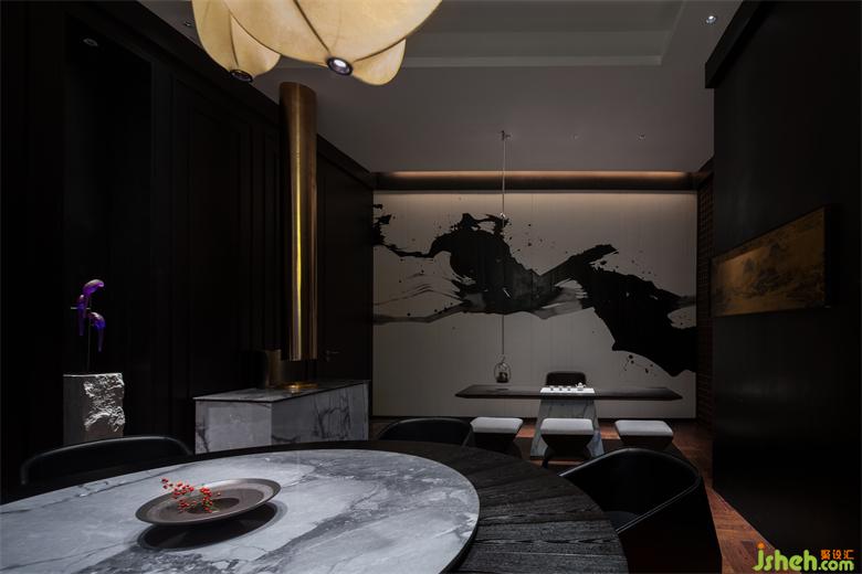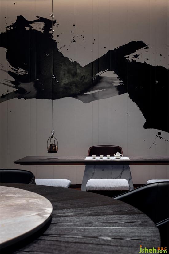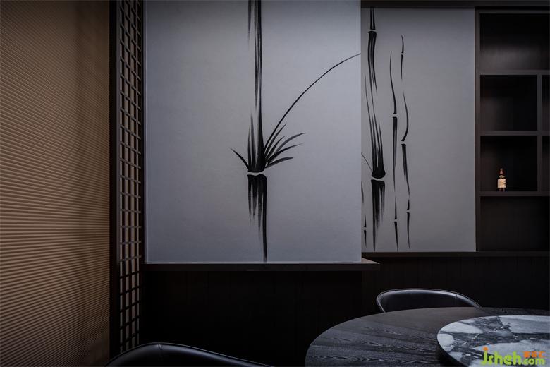 沿著黑色的石材踱步其中,這里每一扇門后面都是我們準(zhǔn)備好的禮物,日式爐端燒餐廳設(shè)計(jì)它們獨(dú)樹一幟別具一格,訴說著不同的故事。燈光照耀到的地方,墻面用白色的杜邦紙鋪貼,水墨藝術(shù)畫作自下而上散布紙上。
