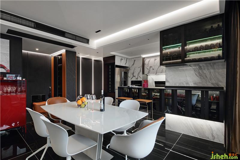 廚房和餐廳之間的吧臺是很有生活情調(diào)也很實用的東西。一個人的時候,坐在The BHS的高腳凳上,聽著音樂小酌,也許你會暫時忘記眼前的煩惱。