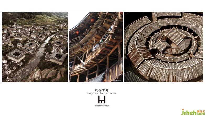 入口處土樓建筑的置入,讓整個空間在主題演繹上做了很好的詮釋。生土夯筑而成的墻體,老舊的木窗,圓樓屋頂?shù)耐咂?,圍合的建筑形式,無不體現(xiàn)了聚落建筑的歷史痕跡。