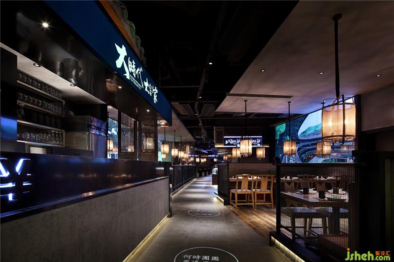 走進(jìn)客語,迎面引入的是一條風(fēng)景怡然的村落走道,一種吸引你探尋空間的視覺效果??ㄗ鶇^(qū)的吊頂設(shè)計則是提煉了傳統(tǒng)屋檐的建筑形式,在掩蓋上層雜亂天花的同時,也加深了房屋的形式感。
