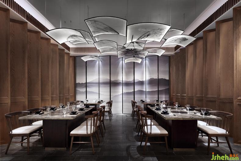配飾上,以蘇州園林的風(fēng)格特征結(jié)合現(xiàn)代時(shí)尚的飾品,多種風(fēng)格兼容并蓄,突出“用低調(diào)的方式演繹奢華”。餐廳設(shè)計(jì)