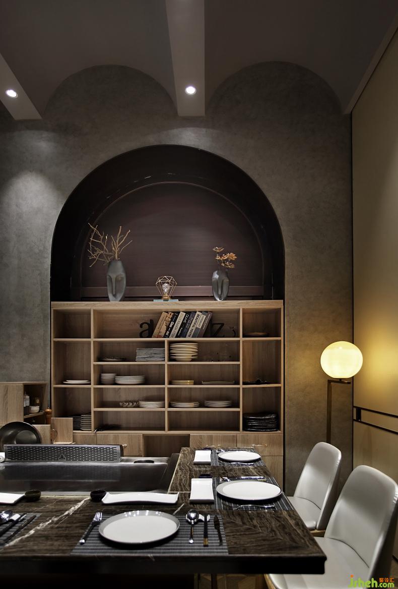 設計師精心考究空間的每一處細節(jié),禮帽造型的創(chuàng)意吊燈、大幅時尚風格的墻體插畫,是整個餐廳的點睛之筆,讓用餐環(huán)境趣意橫生。復古的鐵藝與精致的器皿沖突碰撞,靈動的魚缸裝置與穩(wěn)重的木質桌椅互為印襯,豐富而不失統(tǒng)一節(jié)奏的變化感,讓餐廳更顯雅致。餐廳設計