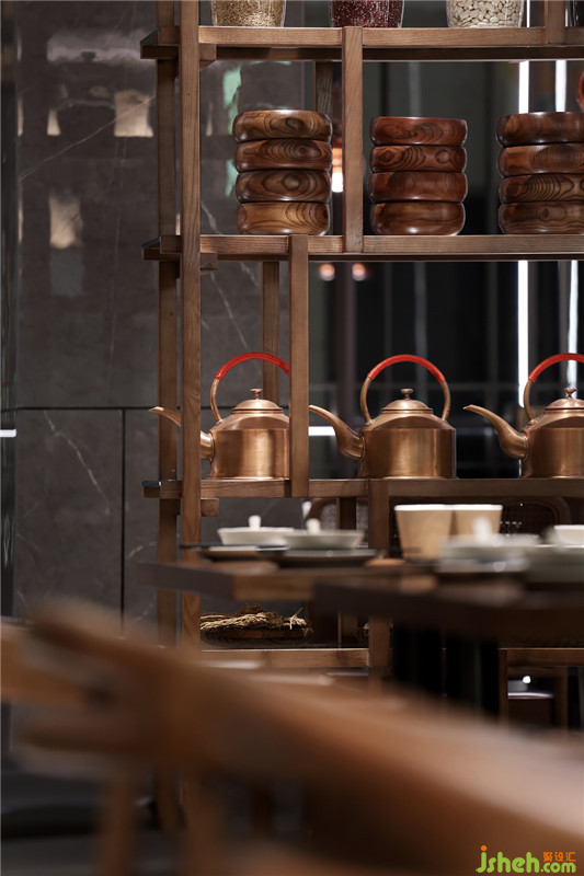 油鹽醬醋茶,鍋碗瓢盆浮世過(guò)。對(duì)尋常百姓來(lái)說(shuō),食飽飲足,可比風(fēng)花雪月更撫慰人心。設(shè)計(jì)師擯棄過(guò)多刻意的裝飾,銅壺,瓦鍋,木碗,藤簍,靜雅登場(chǎng),沉穩(wěn)中不乏生趣,靜默一首動(dòng)人的俗世煙火詩(shī)。