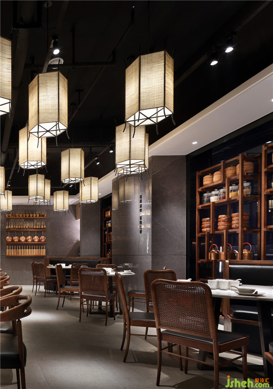 設(shè)計(jì)師走訪三峽之地,從古建筑中汲取靈感,將千百年來(lái)藏匿于屋檐下的斗拱重新創(chuàng)作,以另一種頂天立地的方式存在于空間,不止是陳列食材餐具,更是盛載著人們對(duì)過(guò)往的眷戀。餐廳設(shè)計(jì)