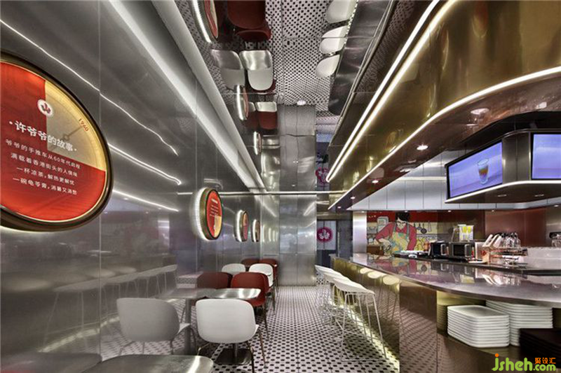 本案既有對(duì)傳統(tǒng)甜品文化的傳承,又有獨(dú)到創(chuàng)新。中島式操作區(qū)設(shè)計(jì),環(huán)顧四周,展示盡收眼底;吧座的增加讓顧客親密互動(dòng),享用甜品的舒適體驗(yàn)瞬間升值。