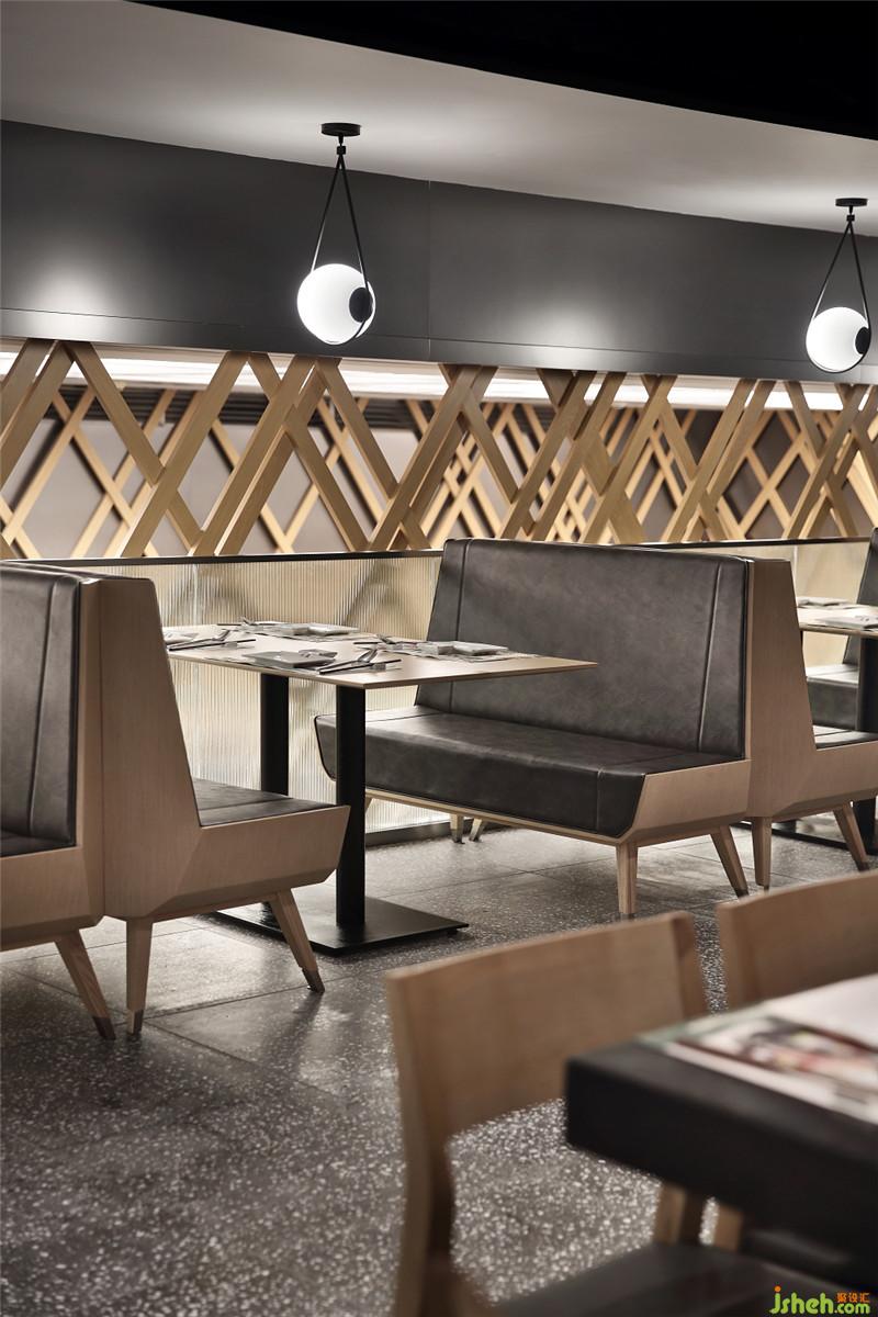 開闊的大廳、開放的明檔、簡約的燈箱、硬質(zhì)的鋼板、格調(diào)包間和雅致過道……多種材質(zhì)的巧妙配合,營造出日式簡約空間,給人輕松浪漫的感覺。餐廳設(shè)計