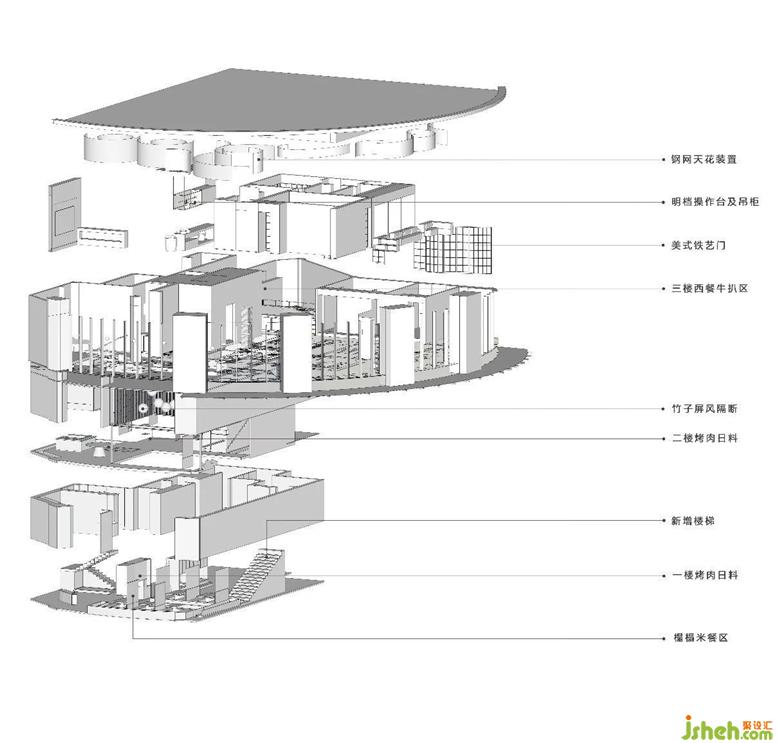 禧牛炙造3層樓,自上而下是西餐區(qū)(3樓)、日料區(qū)(1、2樓)。