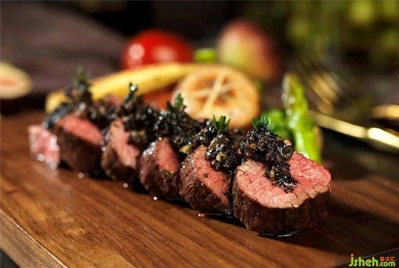 西餐區(qū)設(shè)有醒目的外置牛扒展示臺(tái),是為了讓客人和廚師親密互動(dòng),體驗(yàn)牛扒制作的過程。