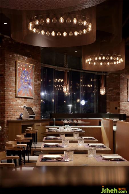 鋼板材質(zhì)的應(yīng)用,讓餐廳硬朗而富有質(zhì)感,肅靜而雅致,樸素水泥墻和紅磚的使用,又悄然地為餐廳注入了溫度。餐廳設(shè)計