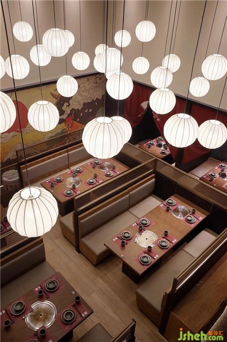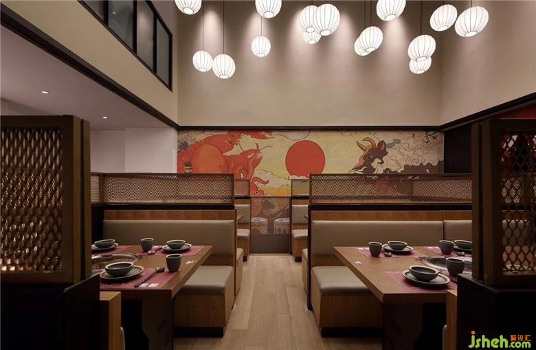 純色暖簾輕輕飄動,日式酒具成隊排列,溫潤的竹子陣列環(huán)繞,還有墻上的日式插畫,點亮空間的竹編燈籠等;
