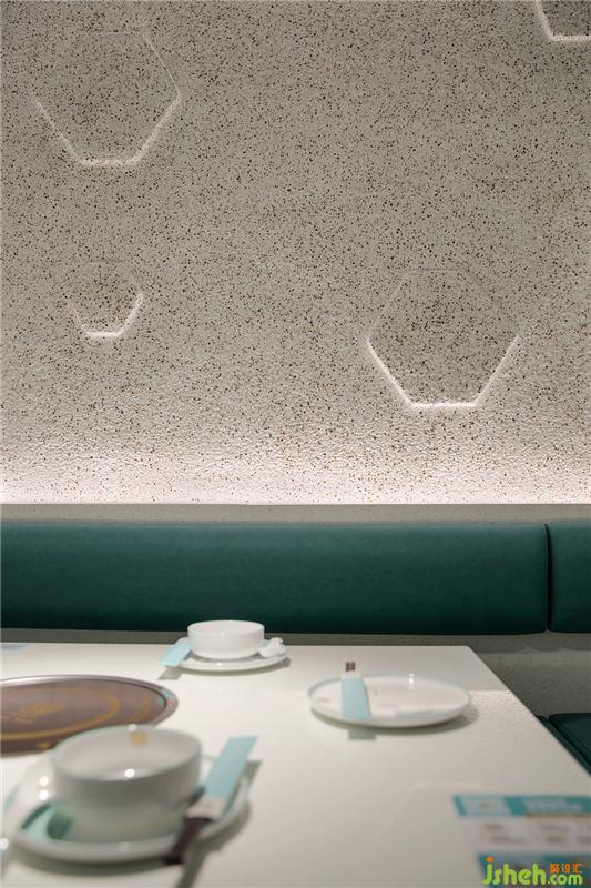 從椰子門走進餐廳,那一刻,我們就步入了海灘。綠色的椰子苗被放大,默默吸收噪音,提升空間舒適度;融入椰客的品牌的肌理裝飾墻面,簡化了空間,也增加了細節(jié)。無處不在的椰子元素,強化了品牌記憶,更讓椰客品牌和空間完美滲透融合。