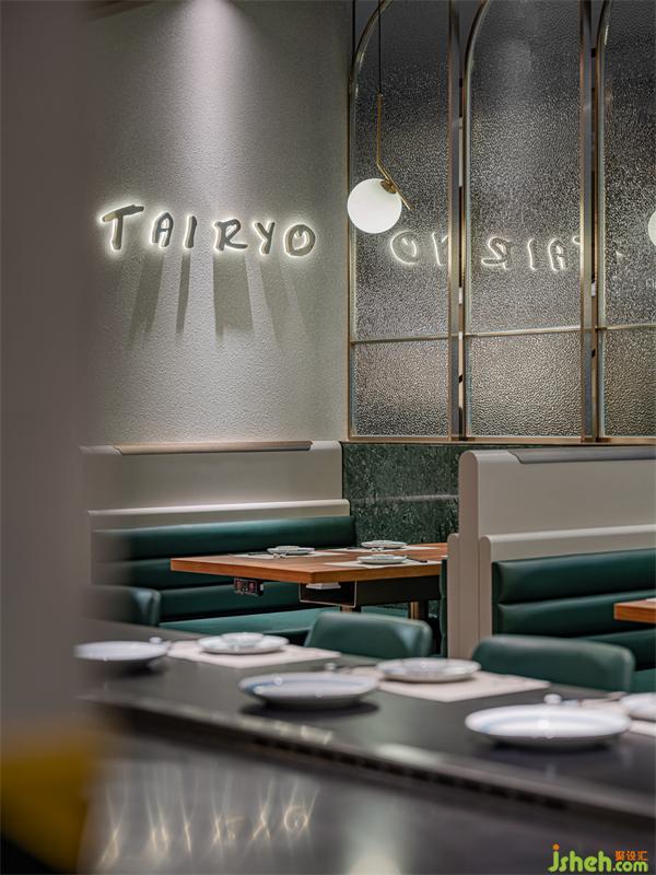 包間墻面的肌理襯托出大漁logo的低奢貴氣