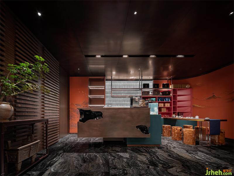 近水樓臺先得月。本案會所空間毗鄰故宮,會所設(shè)計元素應(yīng)用上也順理成章地沾親帶“故”。大紅宮墻迎門,山水屏風(fēng)框景,銅蝕紋理造景,樹脂雅座待客……藝鼎設(shè)計師以現(xiàn)代設(shè)計手法解構(gòu)“宮”文化,打造一處精致優(yōu)雅的中式意境空間。