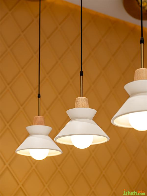 受冰淇淋視覺錘的吸引,來到甜甜的室內(nèi)空間。可見柜子里陳列糖果罐,墻壁上是巧克力網(wǎng)格,酥香流油的吧臺(tái),連燈籠也捎帶甜柔氣息,像是走進(jìn)了迪士尼童話電影《無敵破壞王》拉爾夫的糖果世界!