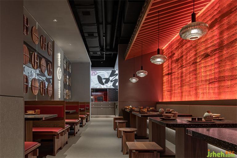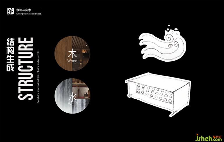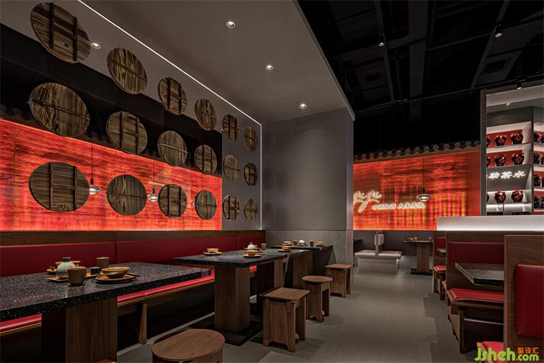 五行之中,水旺木??臻g中木元素取意酒壇之蓋,小酒館設(shè)計(jì)在整齊方正的空間,以序列的方式去強(qiáng)化品牌印記,讓小酒館之名名符其實(shí)。
