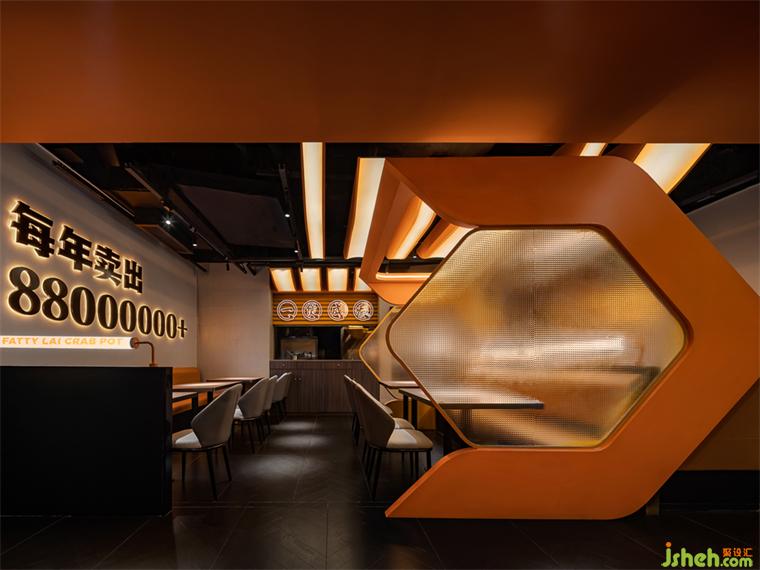 由蟹鉗演化轉(zhuǎn)譯的圖形簡(jiǎn)潔大氣卻呈現(xiàn)特殊的表現(xiàn)力與辨識(shí)度,成為空間內(nèi)的專屬記憶符號(hào)。餐廳設(shè)計(jì)大至餐區(qū)背景板、隔斷,小至咨客臺(tái),都全方位覆蓋鮮明的內(nèi)容標(biāo)識(shí)。