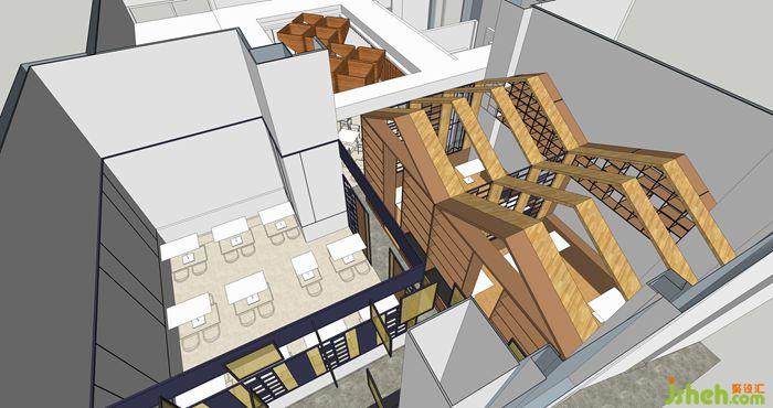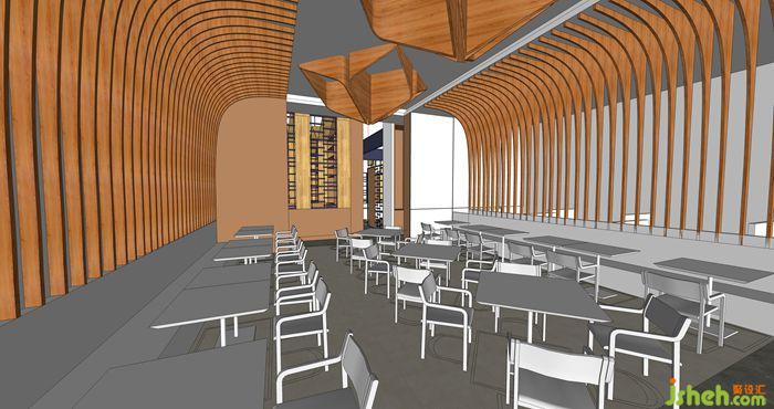 項目層高5米,作為用餐空間來說,不易于讓人產生舒適愜意感,餐廳設計設計師以防火木板制成房屋框架,使用木紋的鋁板做空間隔斷;簡潔的線條,清晰的輪廓與構造,在意境營造上也完美呈現(xiàn)了“榕樹下院落”的既視感。
