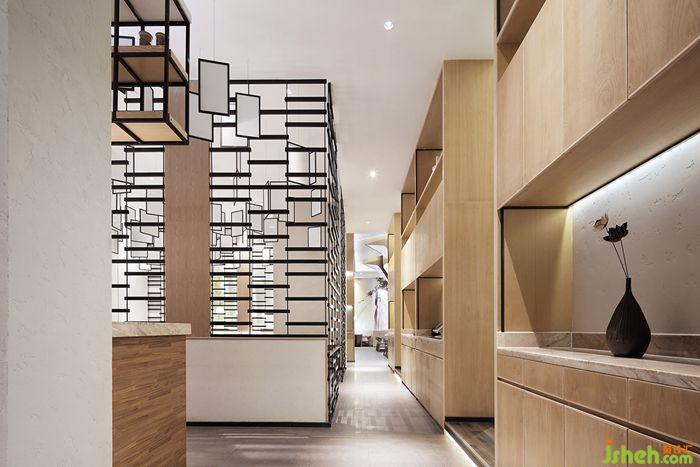 淺灰色地磚降低了整個空間的飽和度,多了份空間質(zhì)感。木紋鋁片做隔斷裝飾,用現(xiàn)代的手法把榕樹樹枝的形態(tài)在空間體現(xiàn),在分割空間的同時也裝飾和提升了整體空間氣質(zhì)。