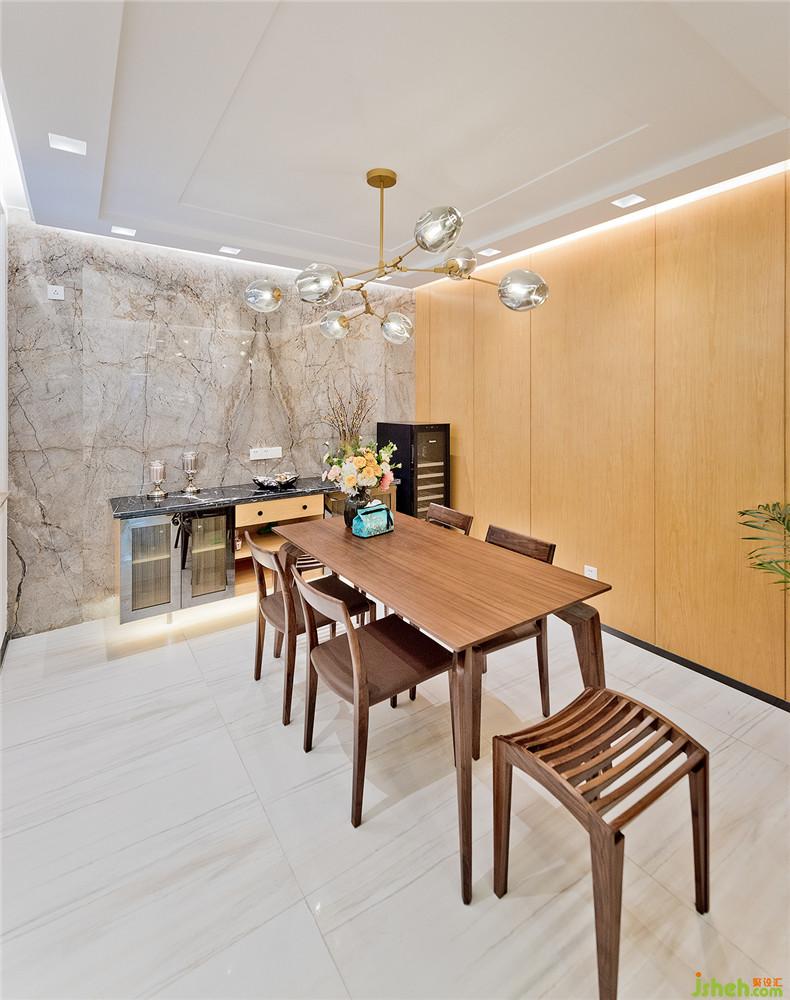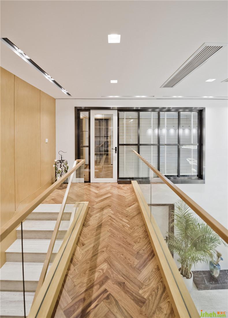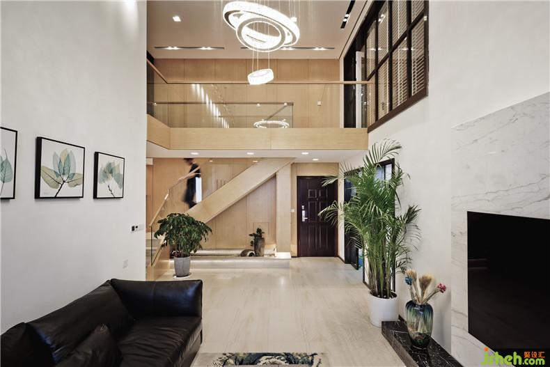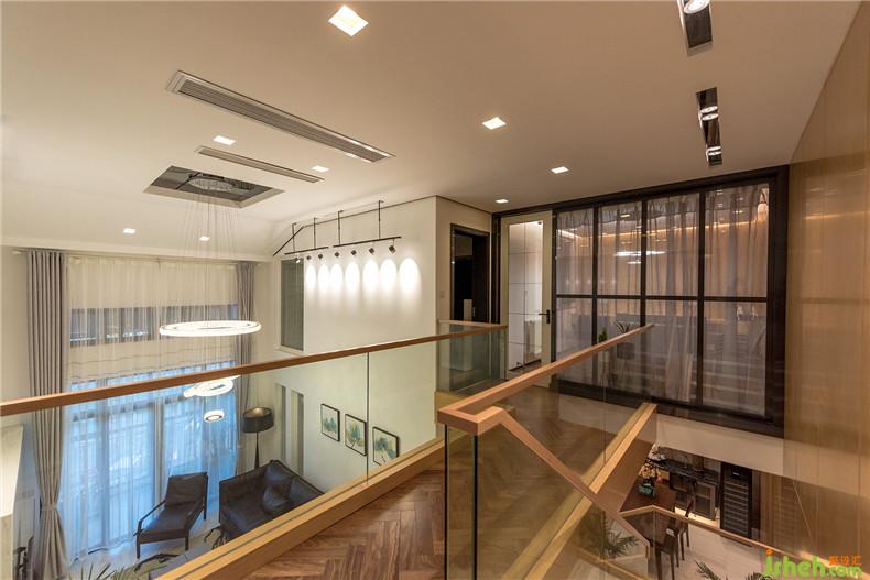 項(xiàng)目為空中躍層,業(yè)主希望簡約大方,考慮到現(xiàn)場地面面積和高度比不夠,顯得客廳狹窄瘦高,因此在客廳開了幾處窗戶,并將棋牌室、衣帽間做玻璃隔斷,以此來拓展地面視覺寬度,達(dá)到精致、簡約、視野開闊的效果。