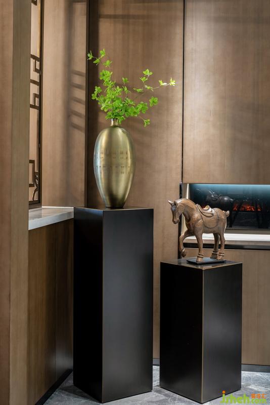 玄關(guān)入口處,一組銅壺綠葉,提示出空間內(nèi)斂、奢華中的恬靜。