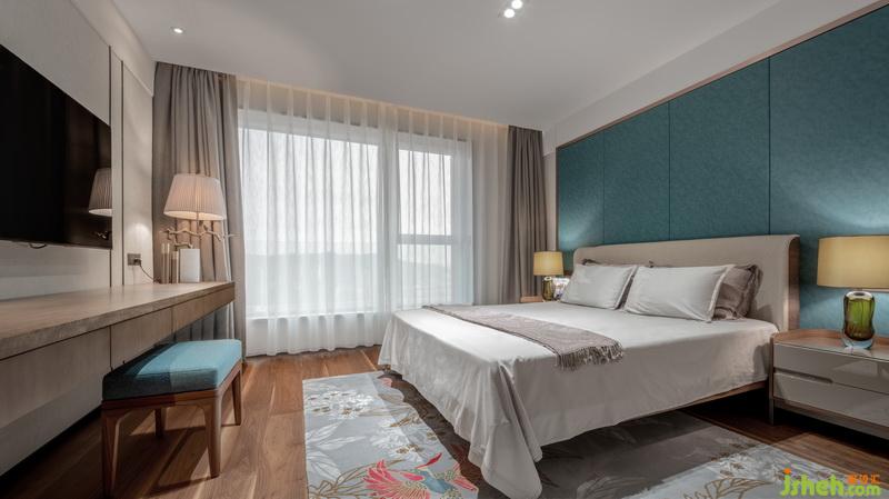 主臥室采用了來自于大海的湖藍色系,呼應(yīng)窗外的海灘也適合老年人的視覺與心理環(huán)境。為業(yè)主營造出舒適而溫馨的休息空間。