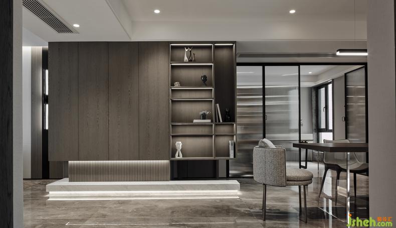 好的設(shè)計(jì)師總是喜歡玩轉(zhuǎn)光影,天光、燈光,加之鏡面反射,單一的空間會(huì)因?yàn)槠恋墓庥岸@得更具層次和趣味,尤其寬闊的客廳空間會(huì)因此顯得更為優(yōu)雅。