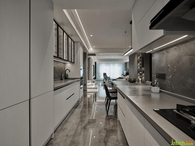 開(kāi)放式廚房亦是精致的優(yōu)雅氣質(zhì)體現(xiàn),解決掉基本的油煙問(wèn)題基礎(chǔ)上,自然是開(kāi)放式的格局更有家居交流感、互動(dòng)感。廚房導(dǎo)臺(tái)與餐桌無(wú)縫銜接,烹飪與就餐的切換流暢而便利。三餐四季,五谷六畜,樸素的生活會(huì)因?yàn)橛行蚋吒裾{(diào)的家居設(shè)計(jì)而變得不那么乏善可陳。
