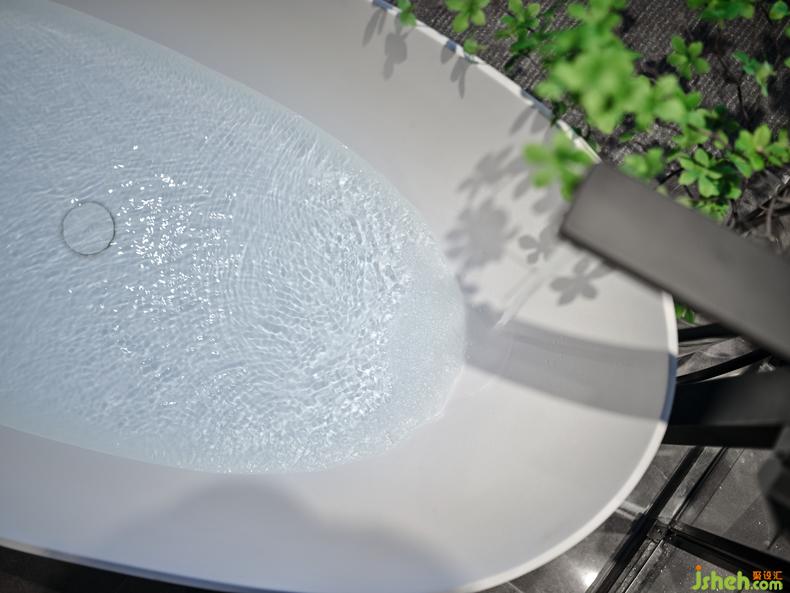 精致的衛(wèi)浴工藝能夠在無(wú)形之中塑造生活的質(zhì)感,生活得越久,越能感受到工藝的精妙效用。室內(nèi)設(shè)計(jì)師流線型的浴缸絕美,在幾支嫩葉的襯托中,水流緩緩傾瀉而下,深灰色的五金潔具透著精雅的品味與儀式感,從此沐浴變成再閑適不過(guò)的生命體驗(yàn)。