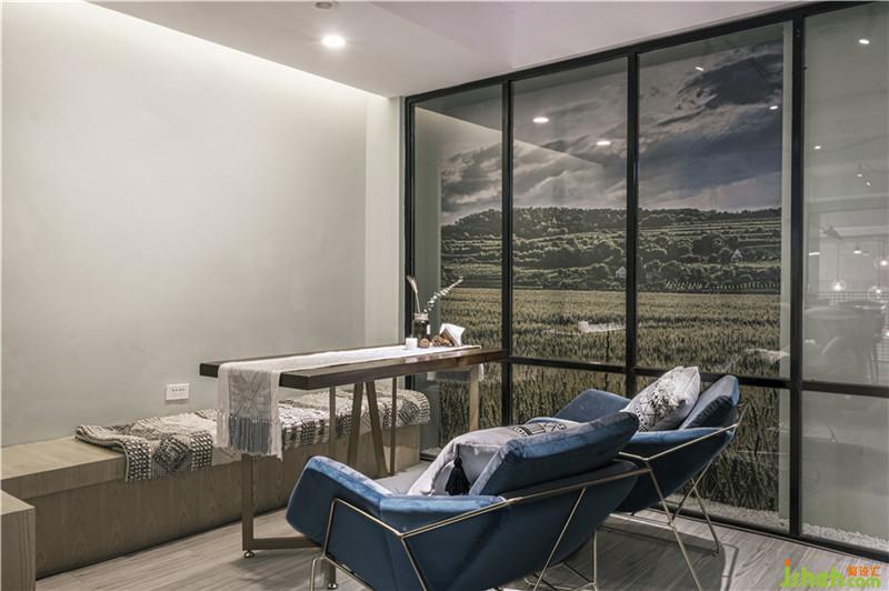 二層作為休息就餐區(qū),簡單個性的藍色、灰色棉質(zhì)沙發(fā)慵懶閑適。同時沙發(fā)窗邊的人造麥田風景,為內(nèi)部空間增添一絲靜謐,也更貼近自然,讓顧客能在此處盡享安逸和放空。