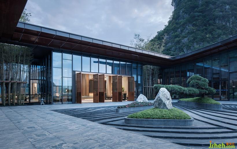 項目擇址在千年文獻(xiàn)名邦桂林,將城市悠久的歷史、優(yōu)美的地貌相結(jié)合,打造出別具一格的學(xué)府派氣質(zhì)內(nèi)涵,成為當(dāng)?shù)氐貥?biāo)性的現(xiàn)代中式文化建筑。會所設(shè)計