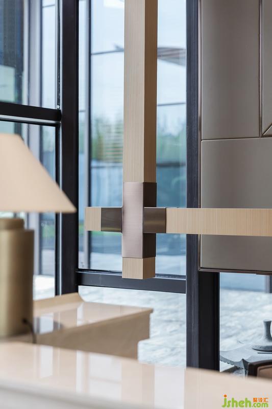 大面積的直線條勾勒出空間意境的氛圍。啞金色的臺燈,在細(xì)節(jié)處透露出現(xiàn)代低奢風(fēng)范。