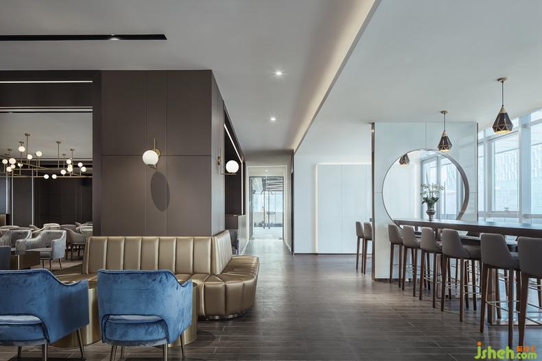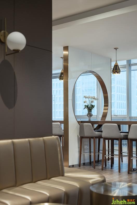 中式隔斷的藝術手法增添空間雅與境的美感,對古典園林藝術的借用,以現(xiàn)代手法演繹了另一番意趣,對望兩端,如跨越于在古典與現(xiàn)代之間,可望,可游,可品。