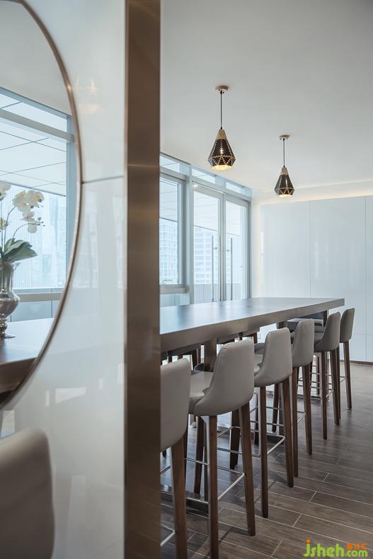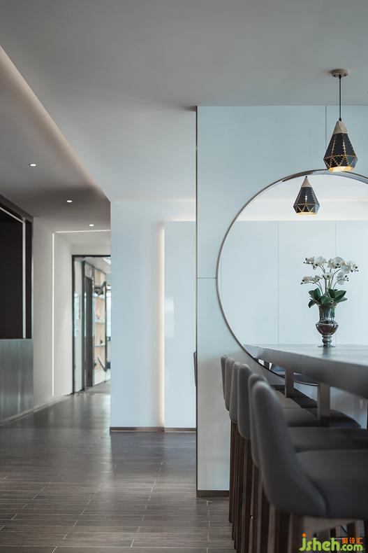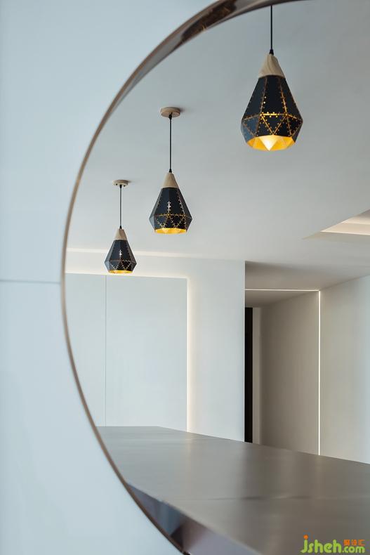 細細揣摩,布藝與沙發(fā)在質(zhì)感上的對立幾乎處處可見,配上桌椅的光度,看似不搭邊際,卻在型與面的處理上,顯得極為合理。