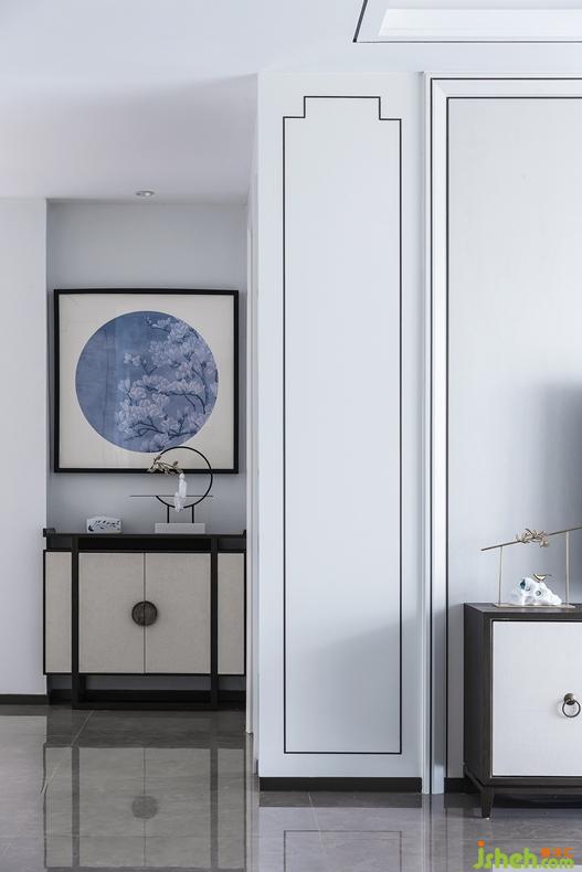 過道融合了莊重與優(yōu)雅的氣質(zhì),用現(xiàn)代手法,把傳統(tǒng)的結(jié)構(gòu)形式通過重新設(shè)計組合,以民族特色的青花圖案表現(xiàn),讓整個空間傳統(tǒng)中透著現(xiàn)代,現(xiàn)代中揉著古典,這樣就有一種東方的“留白”美學(xué),彰顯風(fēng)范。