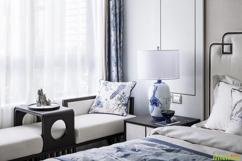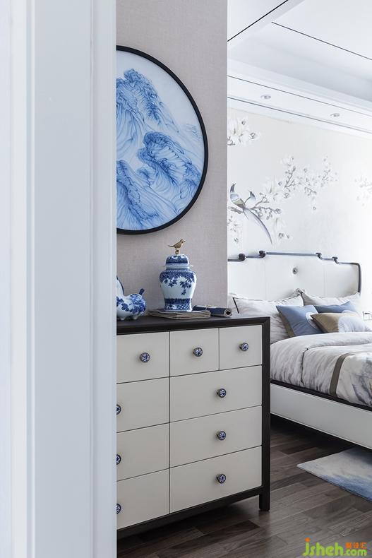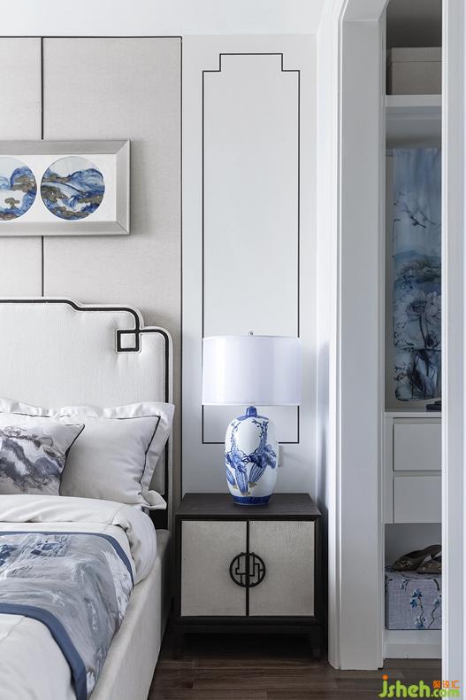 主臥則采用淡雅的色調(diào)來打造,簡約的設(shè)計,床頭素色清雅的青花瓷裝飾畫,移步其中,又幽靜清雅,如同一眼幽泉,將歲月的浮躁與塵埃洗滌,散發(fā)著平和舒緩。