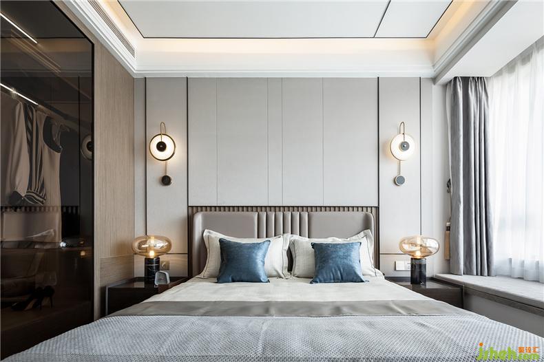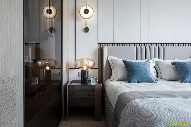 次臥延續(xù)了整體的現(xiàn)代設(shè)計(jì)語(yǔ)匯,溫暖而又舒適。嚴(yán)謹(jǐn)與克制,在相互對(duì)抗中,以協(xié)調(diào)的藝術(shù)語(yǔ)言挖掘沖突的均衡,平衡空間場(chǎng)域,形成了一番新的秩序美感。