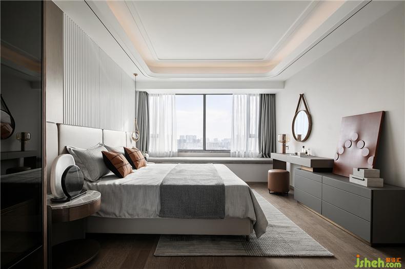 老人房采用了端正穩(wěn)健的配色,大地色系中點綴著麻灰布藝,樣板房設(shè)計結(jié)合精巧的陳設(shè),低調(diào)典雅。精美的皮革制品隨處可見,在質(zhì)感和色彩上皆能遙相呼應(yīng),既藏住了流行,又透著復(fù)古的時尚。