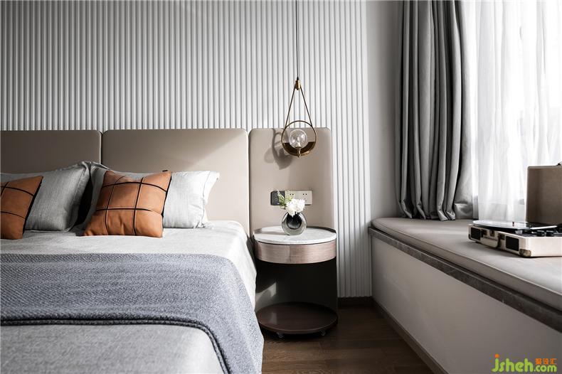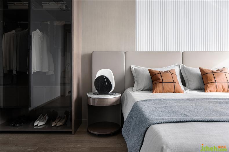 超大的主臥空間,色彩延續(xù)了整體空間的淡雅韻味,墻面上木色與白色拼接,簡約愜意。作為休憩的區(qū)域,設(shè)計師似乎在極度摒棄過多的裝飾,讓每一件物品更顯得不可或缺。
