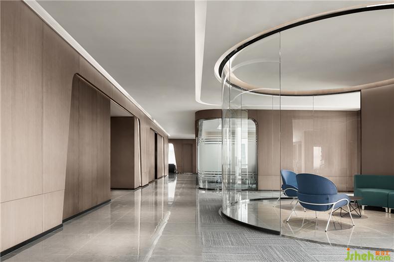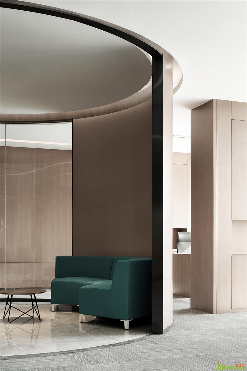 空間呈現(xiàn)一種至簡的流暢,弧形天花在藝術(shù)的塑形下,南寧辦公室設(shè)計(jì)保持著空間的獨(dú)立卻又有開放的視覺。大地色的空間氛圍,將整個(gè)空間串聯(lián),讓室內(nèi)更為安靜。