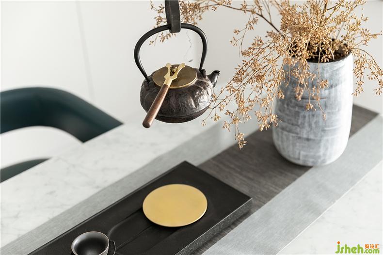 茶室具有一種典雅意境之美,材質的表達,氛圍的營造,樣板房設計無外不在渲染空間中安靜侘寂之美。